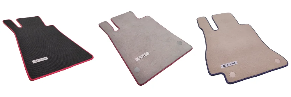 Aracınız ister CLK, SL, S Serisi veya SL olsun, velur Mercedes paspasları ile aracınız çok şık görünecek. Her Mercedes modeline özel paslanmaz çelik logolar ve 20’den fazla kenar ve dikiş ipi rengi sunuyoruz. Bu seçenekler ile velur paspasları Mercedes’iniz için özelleştirebilir ve aracınıza sadece mükemmel bir şekilde uyan değil, aynı zamanda Mercedes’inizi görsel olarak tamamlayan bir paspas seti tasarlayabilirsiniz!