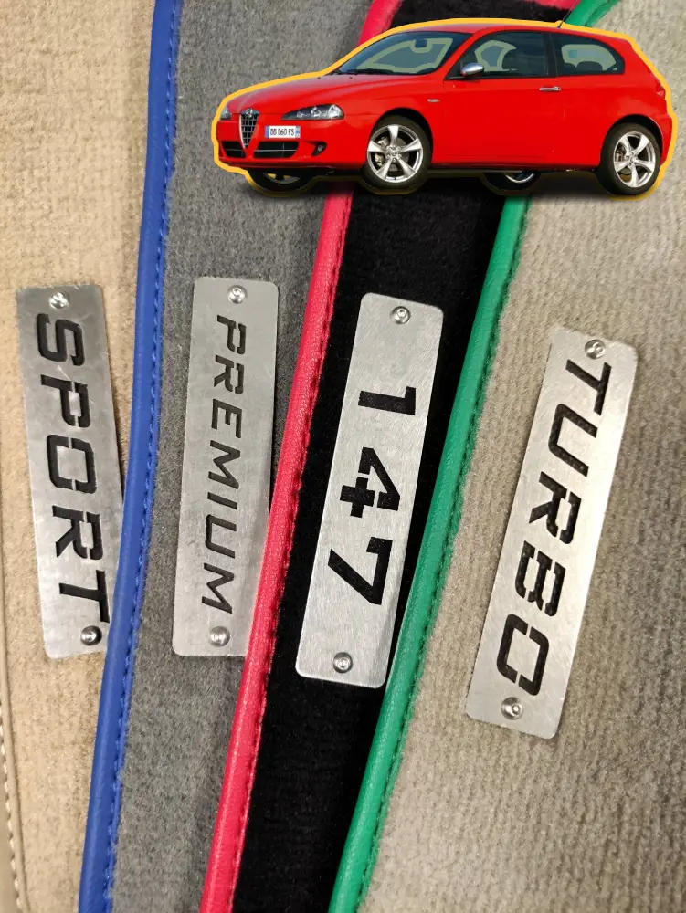 Alfa Romeo 147 velur halı paspas takımı 2000-2010 147 ile tam uyumlu olup 4 parçadan oluşmaktadır. Özelleştirilebilir kenar dikiş ve halı rengi ile paspas setini aracınıza özel olarak tasarlayabilir, paslanmaz çelik 147 metal logoları ile ön paspas setini süsleyebilirsiniz. Farklı özelleştirme seçeneklerinin bir arada görmek için şimdi kataloğumuza göz atın.