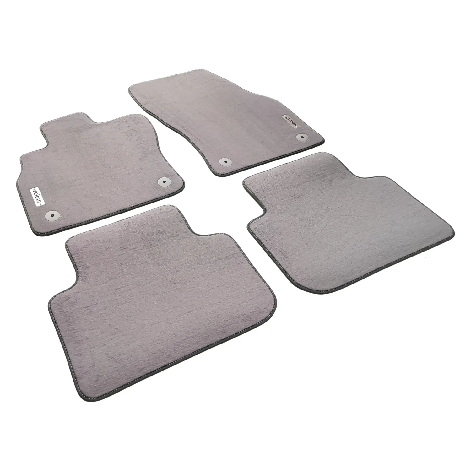 Fiziki uyumunun yanı sıra görünümü ile de dikkat çeken velur Audi Q3 paspas takımı mat, düzenli dokunmuş bir yüzey yapısına sahiptir. Seçilebilen kenar ve dikiş ipi rengi velur paspas takımını aracınız için istediğiniz gibi özelleştirebilmenize imkan tanır. Paslanmaz çelik Q3 logoları velur paspasları daha da şık hale getiriyor.