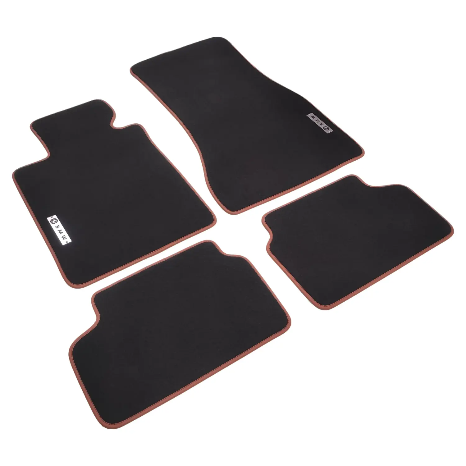 C: Kenar rengi, paspasların iç mekanınızı nasıl tamamlayacağı konusunda büyük bir fark yaratabilir. Örneğin, BMW G30’unuzun zemini siyah ve koltukları bej (konyak rengi) deri ise, bej kenar süslemeli siyah halı seçmeyi düşünebilirsiniz. Bu, iç mekan öğelerinizi güzel bir şekilde birbirine bağlayan zarif bir kontrast yaratır. Size fikir vermesi için aşağıda bir örnek kombinasyon ekledik.
