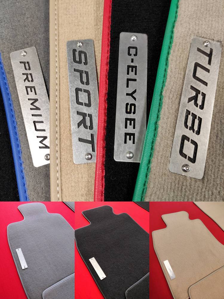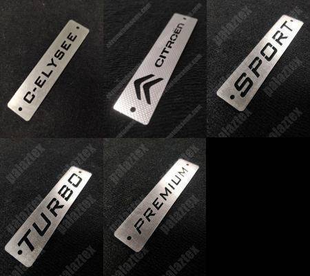 Velur paspasın bir başka ayırt edici özelliği ise metal logolar ile sunulmasıdır. Citroen veya c-elysee metal logo seçeneklerinin yanı sıra Premium Sport gibi diğer logo seçeneklerini aşağıdaki görselde bulabilirsiniz. Metal logolar paslanmaz çelikten üretilmiş olup, paspas setinin ıslanmasından yıkanmasından vs etkilenmezler. 11 x 2,5 santimetrelik ideal boyutları ile abartıdan uzak şık ve parlak bir görünüm sergilerler.