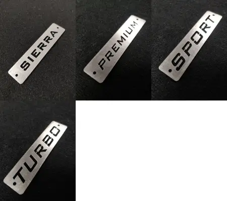 Paslanmaz çelik Sierra metal paspas logosu özel bir aksesuar olup 11×2,5cm ölçüsündedir. Ön paspaslara takılan logolar, paspasların ıslanmasından ya da kirlenmesinden etkilenmezler. Aşağıdaki görselde metal logo seçeneklerini bir arada bulabilirsiniz.