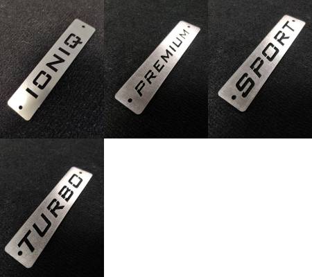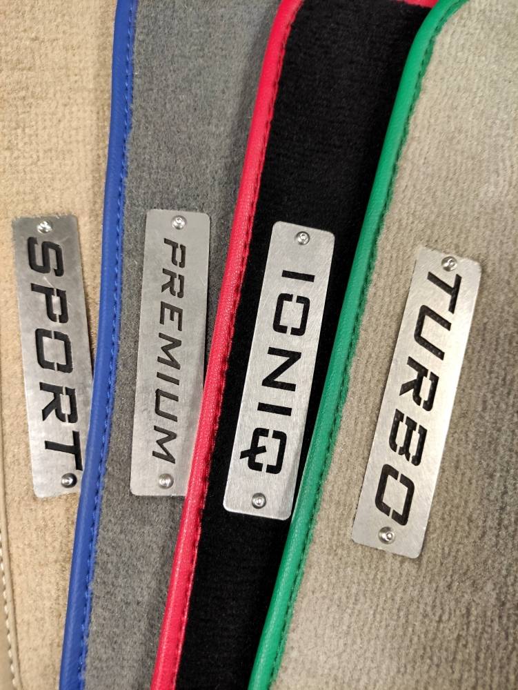 Paslanmaz çelik metal logolar 11×2,5cm ölçülerindedir ön paspaslara takılırlar. Paslanmaz çelik yapıları neticesinde paspas setinin ıslanmasından/yıkanmasından etkilenmeden şık bir görünüm sergilerler. Aşağıdaki fotoğrafta logo seçeneklerini görebilirsiniz.