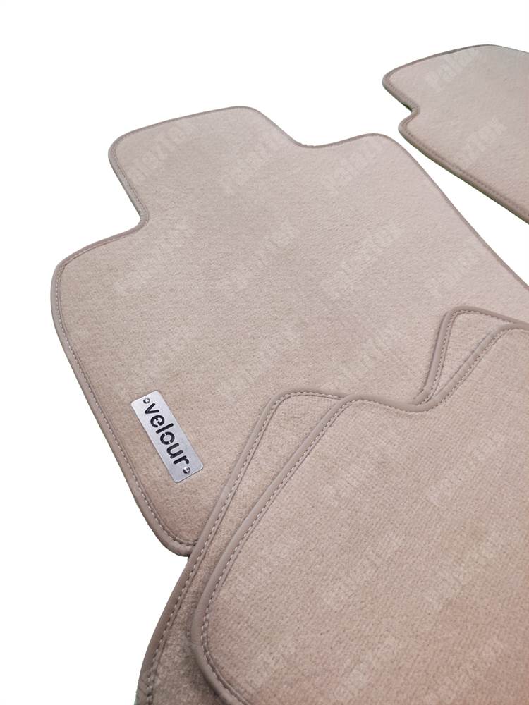 Velur halı paspaslar kadife, yumuşak sık dokuma yüzeyi ile konforlu bir kullanım sunarken, orijinal paspas ile aynı olan ölçüleri ile aracınıza tam uyum sağlar. 4 parçadan oluşan set metal Jaguar uyumlu sabitleme noktaları sayesinde otomobilinizin taban halısı üzerinde sabit kalır, güvenli ve keyifli bir kullanım imkanı sunar. Velur halı paspas takımı farklı halı kalitelerinde sunulur. Seçimlerinizi kataloğumuzu inceleyerek rahatça yapabilirsiniz.