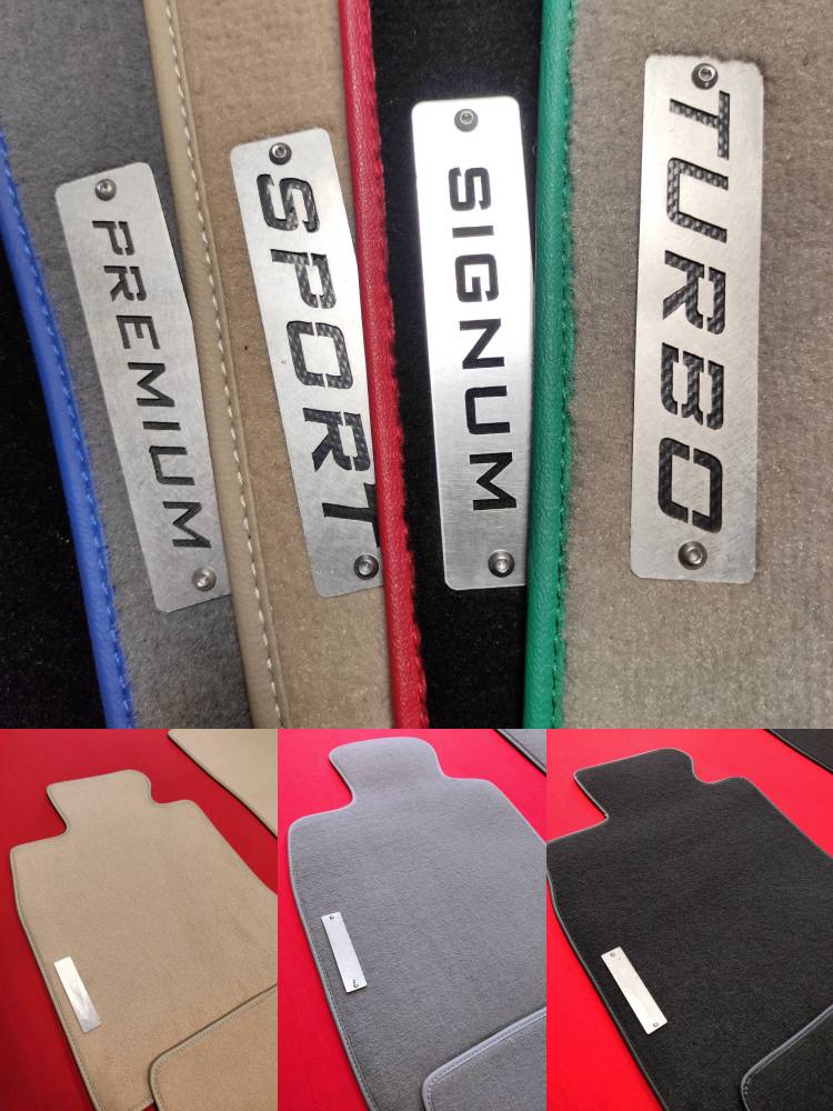 Şık bir görünüme sahip velur paspas setinin görünümünü daha da geliştirmek için Signum metal logolarını sunuyoruz. Bu metal logolar 11×2,5 cm ölçüleri ile ön paspas setinde hoş görünür. Paslanmaz çelik logolar sudan vs etkilenmez her zaman parlak görünürler. Diğer logo seçenekleri aşağıdaki görselde bulabilirsiniz.