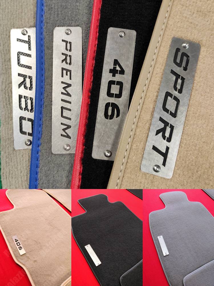 Peugeot 406 ve 406 coupe uyumlu velur halı paspas takımı 4 parçadan oluşmakta olup kadife, yumuşak yüzey yapısı ile konforlu bir kullanım sunar. Özelleştirilebilen deri biye ve dikiş ipi rengi ile sunulan paspas setini aracınızın iç mekan detaylarına göre tasarlayabilirsiniz. Paslanmaz çelik 406 metal logoları paspas setine şık bir görünüm veriyor. Kataloğumuza göz atarak şimdi paspas setinizi özelleştirmeye başlayabilirsiniz.