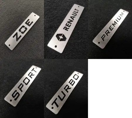 Paslanmaz çelik malzemeden velur paspaslar için özel olarak ürettiğimiz metal ZOE logoları ön paspas setine takılırlar. Metal logolar paspasların ıslanmasından etkilenmezler. Metal logolar 11×2,5cm boyutundadır. Aşağıdaki fotoğrafta sunduğumuz diğer metal logo seçeneklerini görebilirsiniz.