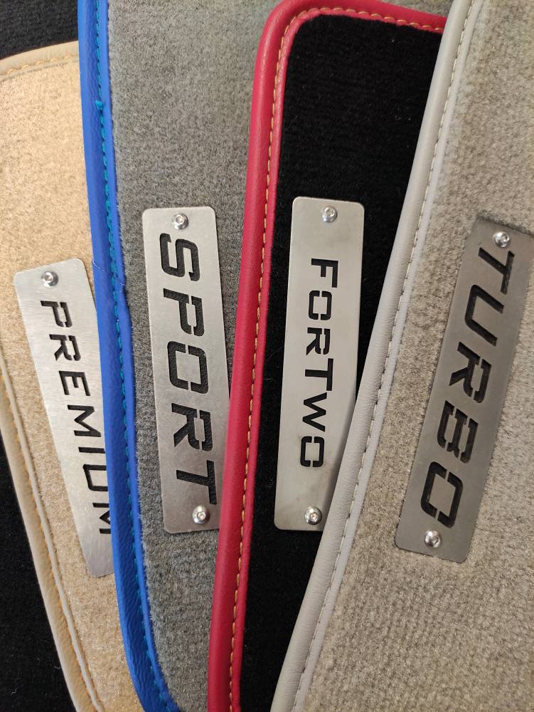 Aracınız için özel üretilmiş Smart paspas seti paslanmaz çelik metal logolar ile çok daha şık görünecek. ForTwo metal logoları (opsiyonel) halı paspas setine sabitlenmekte ve velur paspas setinin görünümünü geliştirmektedir. Aşağıdaki fotoğrafta diğer metal logo seçeneklerini de görebilirsiniz. Paslanmaz çelikten üretilmiş olduklarından, her türlü koşulda paspas üzerinde parlarlar.